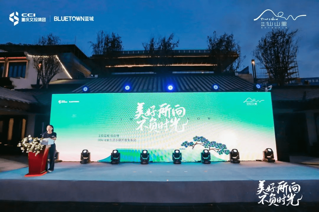 最后,小镇生活启动仪式正式开启,各单位领导步入舞台中央,在一片欢腾的氛围中,在现场来宾的共同见证下,征途国际pg官网入口集团代表童艺强、蓝城集团代表温智泉、重庆建工集团代表崔斌,与业主代表熊女士将一副巨幅卷轴依次传递并共同展开,「世界的仙女山 国际的仙山里」几个大字惊艳亮相,彰显出古朴苍劲,骨气洞达的气质,象征了仙山里项目的美好愿景,自此标志文投蓝城·仙山里小镇中心正式开放!